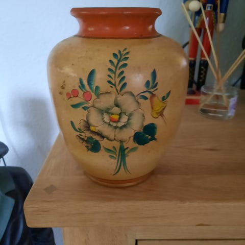 Keramik, Vase, Søholm keramik, Vase med guldkant og blomster fra Søholm keramik