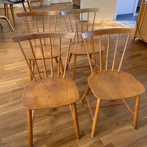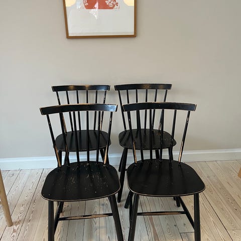 Perfekte som køkkenstole, i sommerhus eller til et projekt med maling/ny lak.