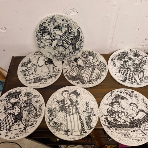 Bjørn Wiinblad platter 9 stk sælges samlet eller hver for sig. 35 kr pr stk. Måneder: Jan. - juli og sep. Og okt.