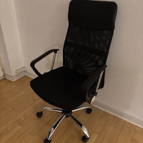 Kontorstol med høj ryg og god siddekomfort. God stand, let slitage