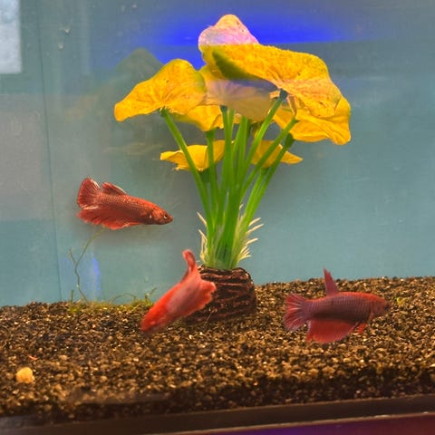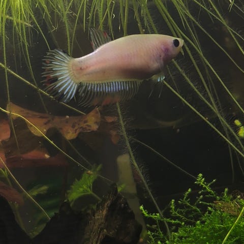 Gratis kampfisk hun købt sidste sommer. Hun går fint med rejer og guppyer.