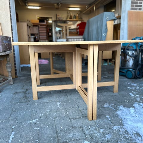 Produceret hos Karl Andersson og sønner Nu renoverer med et super flot resultat. Gammelt snavs er fjernet og bordet har fået ny plejende olie. Bordet er en skulptur i sig selv og emmer at godt håndværk og klassisk design. Brug det som skrivebord, krea-bord eller Spisebord. Det vil optimere dit rum uanset hvad.