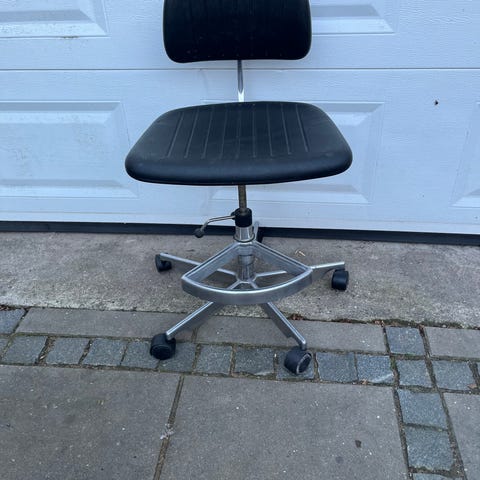 Stolene er højdejusterbare og har vip i ryggen. De er i brugt stand med almindelige brugsspor (ridser/slitage), men fungerer som de skal og er solide.