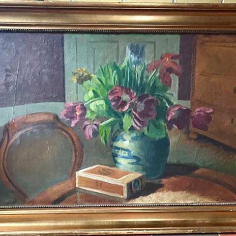 Charmerende Nykøbing Falster maleri fra 1954 af Christian Jensen