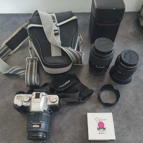 Sælger dette klassiske Pentax P30 spejlreflekskamera (35mm film). Det er et utrolig populært og brugervenligt kamera, som er kendt for at være driftssikkert og nemt at lære at kende.