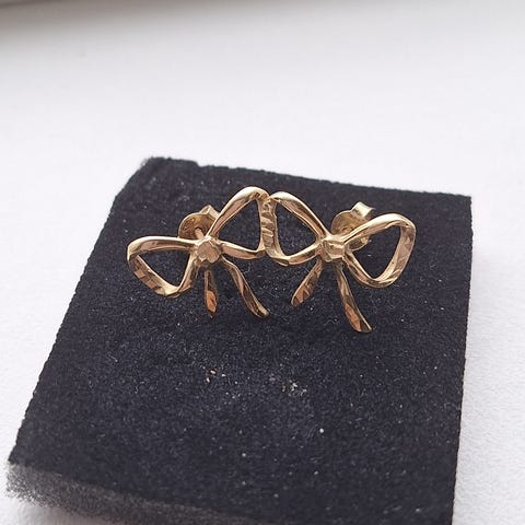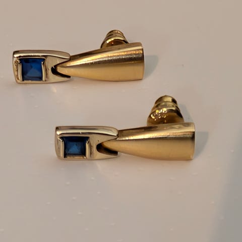 14 karat guld med ægte perler, med spinkle og fine detaljer. Måler 2,1 cm og er stemplet 14K. Vægt: 1,2 gram.