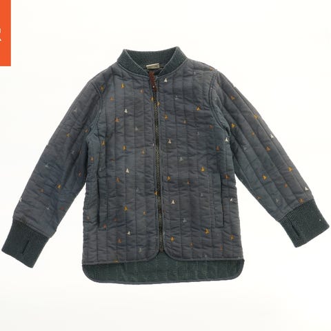 Denne jakke er quiltet og har et camouflage mønster i grøn og sort. Den har en lynlås foran, lommer med lynlås og ribkanter ved både krave, håndled og talje. Der er en mærke detalje på armen.