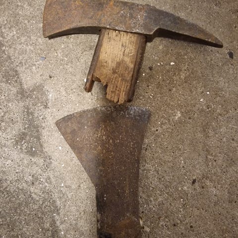 3 forskellige økser. Den med gult skaft er kun brugt et par enkelte gange. De to andre er aldrig brugt. De har bare ligget i gemmerne på loftet nogle år. Pris pr økse.