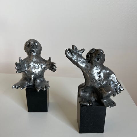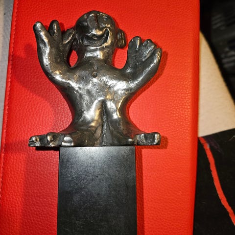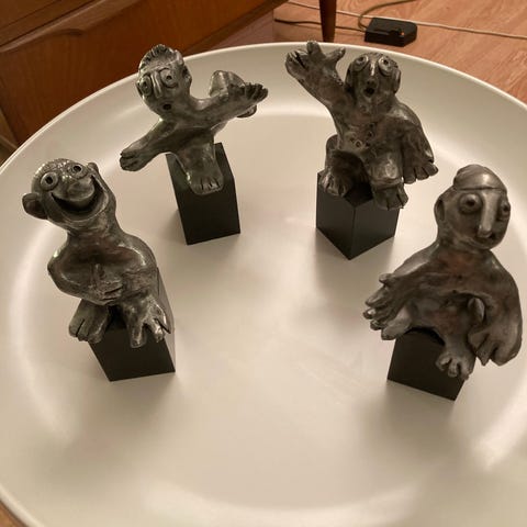 De 10 Typer Bossen figur. Dekorativ skulptur med humoristisk figur monteret på sort sokkel. Design: Palle Mernild. Velegnet som pyntegenstand eller som symbolsk gave til kontor eller hjem.