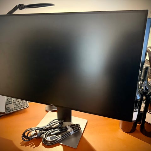 Dell U2515H skærm med 25" skærmstørrelse i sort kabinet. Skærmen er monteret på en højdejusterbar fod med rektangulær base. God kvalitet skærm, max 2560x1440 60hz. Virker perfekt.