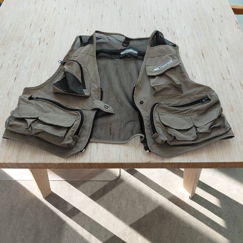 Fiskevest i størrelse L i god stand. Med masser af praktiske lommer.