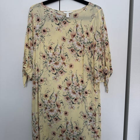 H&M sommerkjole til kvinder i str. 38. Kjolen er lavet i polyester og har et blåt mønster på lys bund. Ærmeløs model med rund hals. Velegnet som let sommerkjole til hverdagsbrug eller ferie.