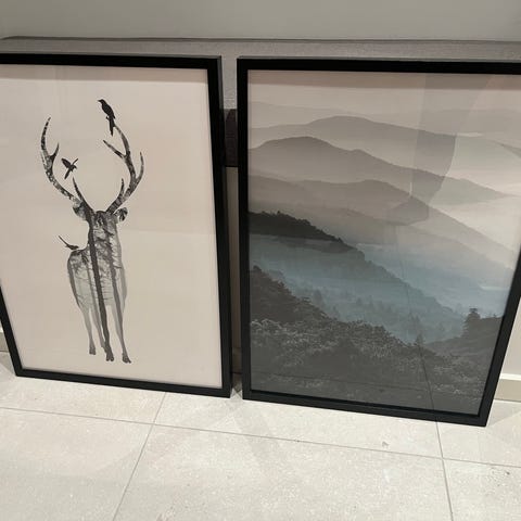 Plakater med molekylerne glucose og lakrids. Sælges inklusive rammer - sorte IKEA RIBBA 50x70 cm.