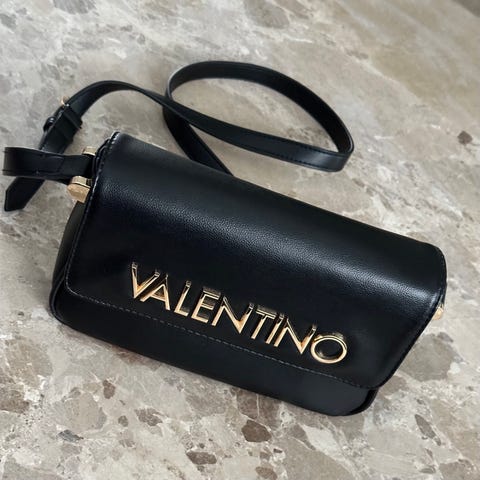 Valentino Bags belt bag / bum bag. Sort kunstlæder eller læderlook. Guldfarvet logo og lynlås