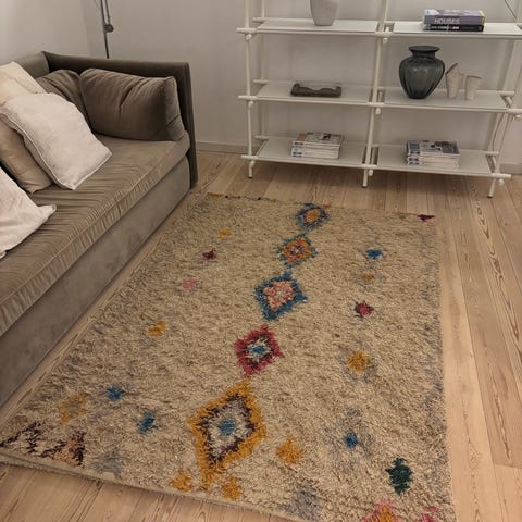 Rugvista tæppe i ensfarvet orange/brændt rød nuance. Tæppet har et enkelt, vævet udtryk i uld med let melering i farven. Egnet til brug i stue, soveværelse eller andre opholdsrum. Brugt men i ok stand. Måler 245x350. Nypris ca 3500.