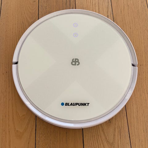 Blaupunkt robotstøvsuger i hvidt, rundt design. Enheden har to sidebørster og hovedbørste under bunden samt hjul, der gør den egnet til kørsel på hårde gulve og tæpper med lav luv. På toppen findes betjeningsknapper. Medfølgende tilbehør omfatter ladestation med strømforsyning, flere sidebørster, ekstra filtre, fjernbetjening og andre smådele til vedligeholdelse og drift. Velegnet til automatisk støvsugning i hjemmet.