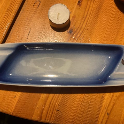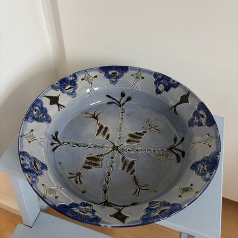 Stort Eslau fad/skål. Diameter 35 cm. Højde ca 6,5/7 cm. Rigtig god stand uden skår.