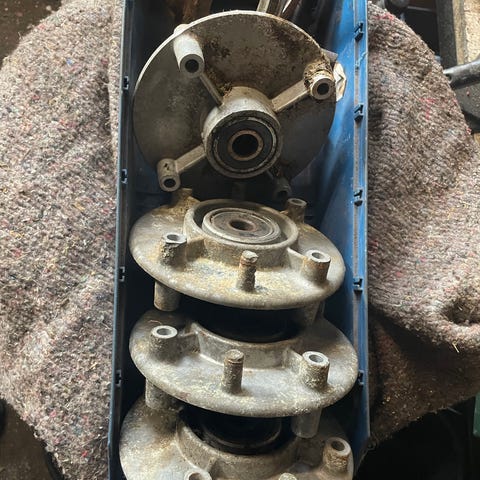 Men fx løse motorer, rå skjold (uden aksler eller noget), tændspoler, benzintanke, motorbremser, snortræk/rekylstart, kabler, hjul, bioklip/afskræmnkng til sideudkast/remtræk, luftfilterkasser, karburatorer, startermotorer til elstart, udstødninger og afskærmning dertil, knive, knivholdere, remhjul til fremtræk osv....