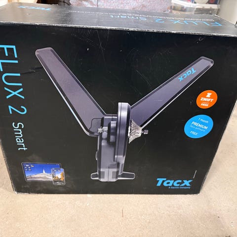 Tacx Flux Smart hometrainer. Ikke brugt meget, der medfølger Shimano kassette og en stand til pc/tablet