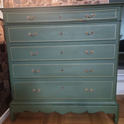 Kommoden er udført i fyrretræ og creme hvid på fronter.