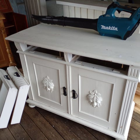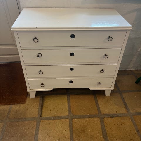 Kommode med 3 skuffer og nye greb i sølv firkantet.