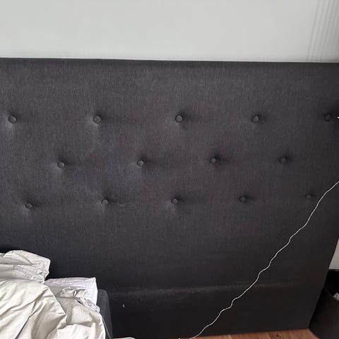 Stofbetrukket sengegavl fra Jensen.