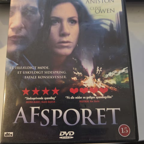 Afsporet DVD film. Dansk thriller/spændingsfilm på DVD. Forsiden viser filmens titel og hovedpersoner samt aldersgrænse 15 år. Egnet til afspilning på standard DVD-afspillere, der understøtter det relevante regionsformat.