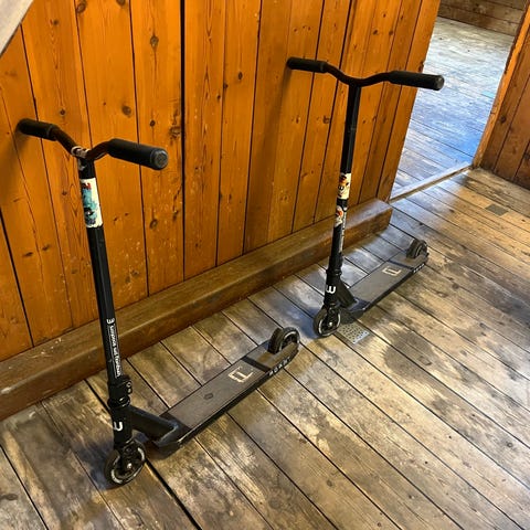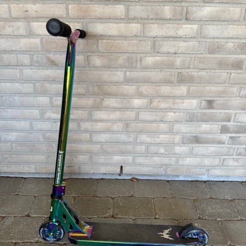 Dette tricks løbehjul udtrykker de nyeste trends indenfor løbehjul verdenen! Moderne features såsom store aluminiumshjul, dyb perlemors farve på hjul og håndtag, samt vægtbesparende udskæringer i clamp og headtube ses kun undtagelsesvist på løbehjul i denne klasse.