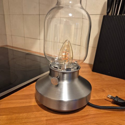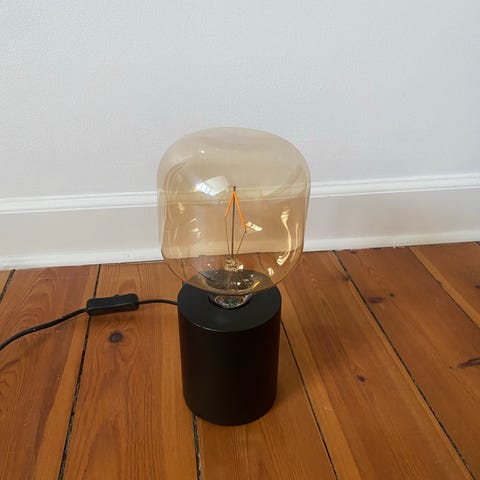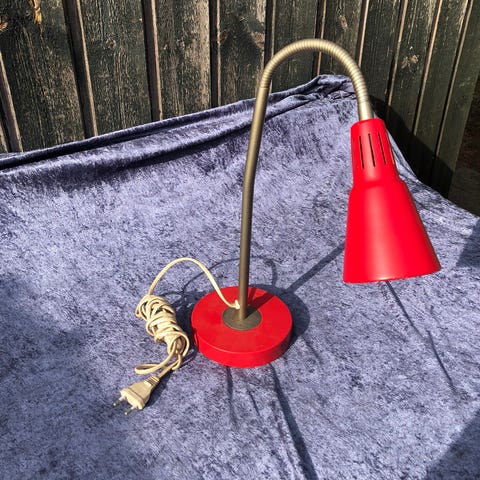 Fin ikea bordlampe med funky orange fod. Fungerer perfekt