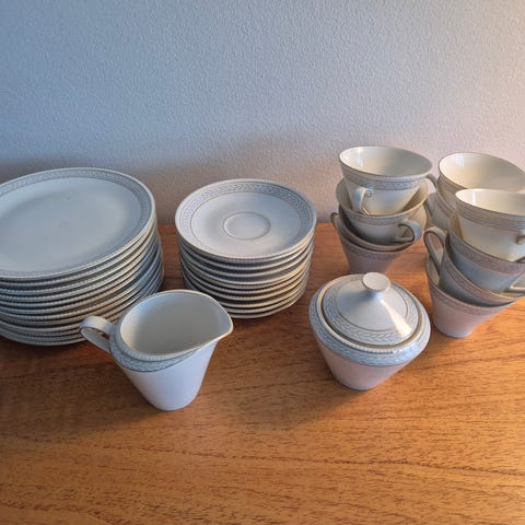 Bavaria Tirschenreuth porcelæn stel med blomsterdekoration. Stellet består af tallerkener, kopper og underkopper samt et rundt serveringsfad med hanke. Porcelænet er lyst med flerfarvet blomsterdekoration. Bunden er stemplet med Bavaria Tirschenreuth 100 Germany, som angiver producent og serie. Velegnet som kaffestel eller serveringsstel.