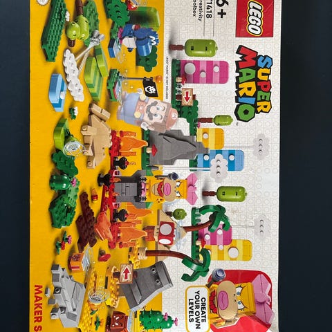 LEGO Super Mario byggesæt med forskellige klodser, figurer og elementer til opbygning af Super Mario baner. Sættet indeholder flere Super Mario figurer samt forskellige miljødele som rør, platforme og huse. Der medfølger flere trykte byggevejledninger til de viste baner. Egnet til leg, opbygning og udvidelse af LEGO Super Mario universet.