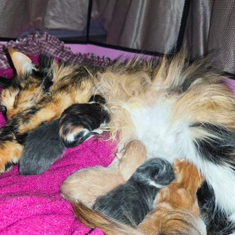 vokser op i stue, vil blive socialiserede med mennesker og andre katte samt en kanin og blive vant til hverdagens lyde og aktiviteter.