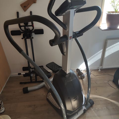 Crosstraineren har elektronisk display med knapper til styring af funktioner og visning af træningsdata som tid, distance og andre relevante målinger. Pedaler og håndtag er udformet til helkropstræning med både arme og ben.