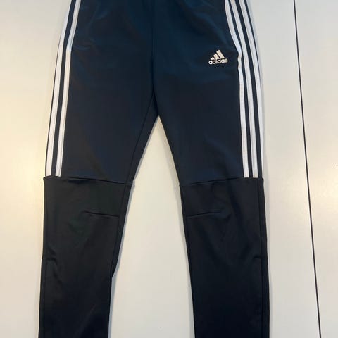 Adidas træningsbukser til fodbold i børnestørrelse 164. Bukserne er sorte med hvide detaljer og Adidas-logo på låret. Velegnet til fodboldtræning og anden sport. Fremstillet i let og funktionelt materiale, der giver god bevægelsesfrihed. Unisex model, der kan bruges af både drenge og piger.