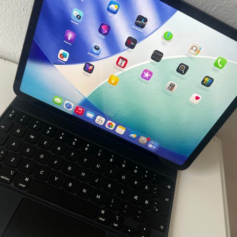 Der medfølger et originalt Apple Magic Keyboard, som både fungerer som keyboard og cover. Der er ikke rigtig blevet brugt til at skrive på, mest bare som cover.
