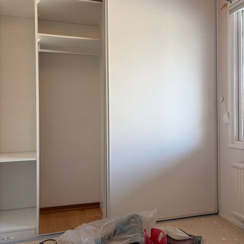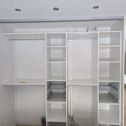 HTH indbygningsskab bestående af 2 skydelåger, top og bundskinne og et endestykke.