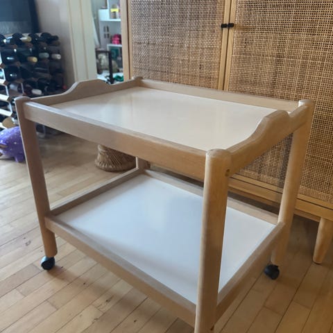 Superhyggeligt rullebord / bakkebord hvor den øverste plade / bakke ligger løst så du let kan tage den af og bruge den til servering.