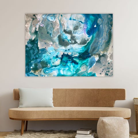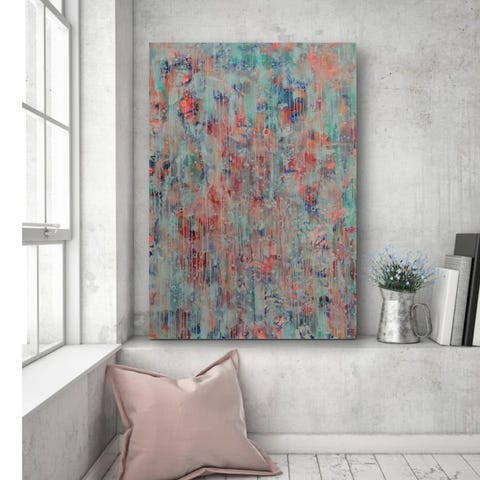 Abstrakt maleri akryl på lærred blå pink