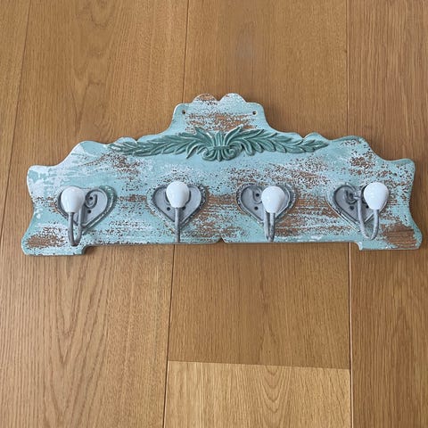 Flot børnevenlig knagerække og 7 enkelt knager i fine farver.