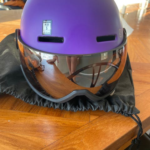 Salomon skihjelm med visir blå