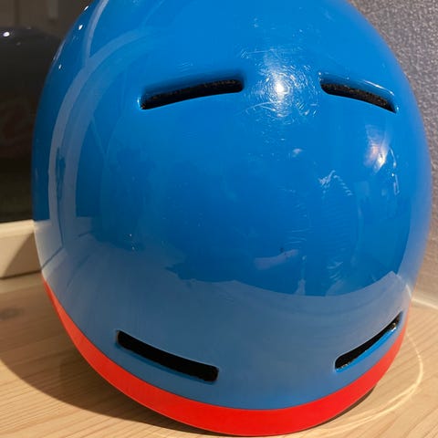 Blå hjelm med visir 54-55 cm 200kr