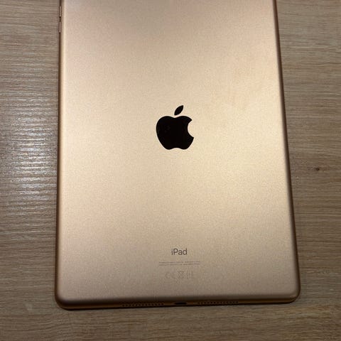 Apple iPad tablet med 32 GB intern hukommelse. Enheden har touchskærm på forsiden og kameramodul på bagsiden. Velegnet til almindelig brug som internet, streaming, apps og lette arbejdsopgaver. Understøtter trådløs forbindelse via wifi og oplades via den nederste port. Designet er slankt med knapper til lydstyrke og tænd/sluk på siden.