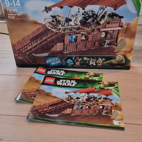 LEGO Star Wars 75020 Jabba's Sail Barge byggesæt. Sættet er en del af LEGO Star Wars serien og forestiller Jabba the Hutts sejlbåd fra Star Wars-universet. Indeholder klodser og figurer til at bygge og lege Star Wars scener. Velegnet til LEGO byggere i alderen 9-14 år ifølge æsken.