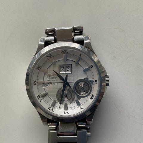 Seiko kronograf. Soldrevet så du skal ikke bekymre dig om batteri. Det er 39mm. I rigtig god stand, bortset fra en lille ridse i glasset ved kl. 8, ved ikke om det kan poleres væk eller om der skal et nyt glas til.