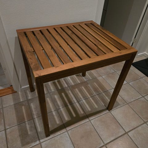 Sælger dette bord, som kan bruges i enten shabby chic indretningsstil eller males, vokses eller lakeres Som det kan ses af foto, er der en revne i lidt af det ene bordben. Det er dog stabilt og et meget brugbart bord på grund af størrelsen og en god højde.