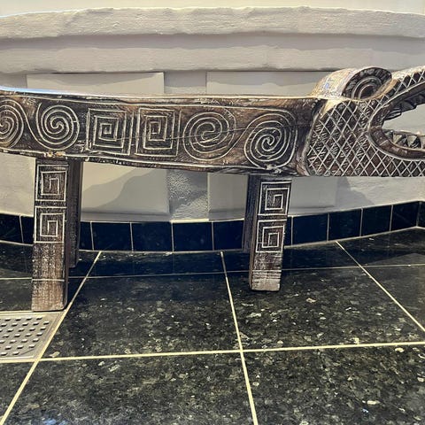 Håndskåret i hårdt træ med ben tænder