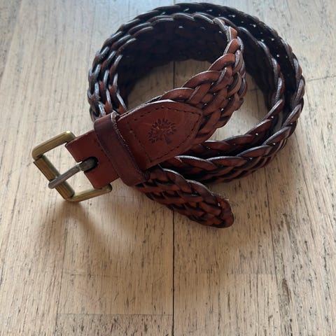 Sælger mit Mulberry Boho flet bælte i mørkebrun læder str. S med en total længde på 112 cm og 3 cm bredt. Har lidt almindelige brugsspor som det fremgår af billederne, men generelt i god stand. Kvittering haves.