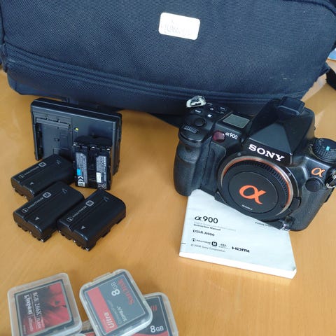 Købt brugt i 2021. Med batteri greb og oplader samt 2 originale batterier. Sony Alpha 9 digitalkamera i sort. Kamerahuset er et spejlløst full-frame kamera i Alpha-serien med elektronisk søger og stor LCD-skærm på bagsiden. Perfekt til sport og action.