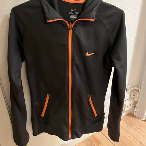 Only Play træningsjakke til kvinder i størrelse S. Jakken er sort og har gennemgående lynlås foran samt høj krave. Den er egnet til fitness og løb. Materialet fremstår som et let og strækbart stof, der giver bevægelsesfrihed. Designet er enkelt med lange ærmer og en figursyet pasform, velegnet som yderlag over træningstøj.