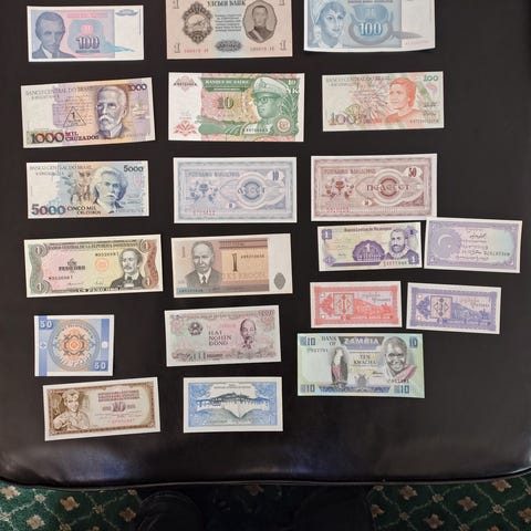 20 stk forskellige udenlandske sedler i flot kvalitet 0